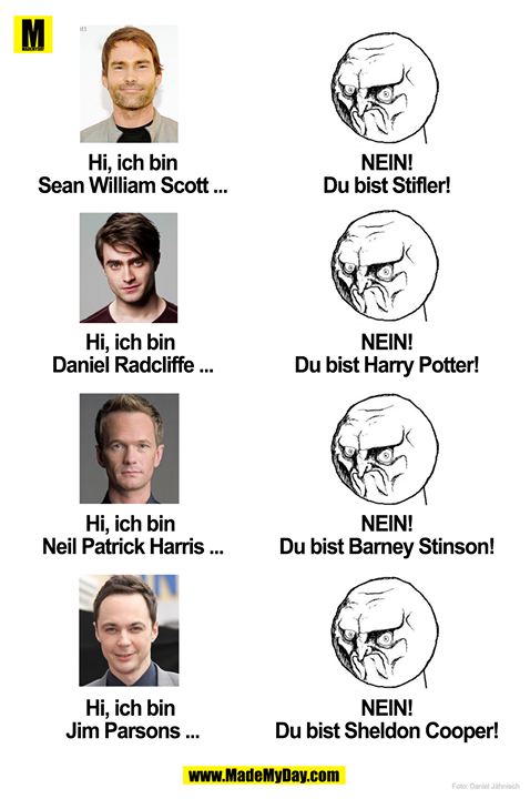 “Hi, ich bin Rowan Atkinson...“ “Nein, Du bist Mr. Bean“ “Hi, ich bin H. Baumann...“ “Nein, Du bist DJ Bobo“
