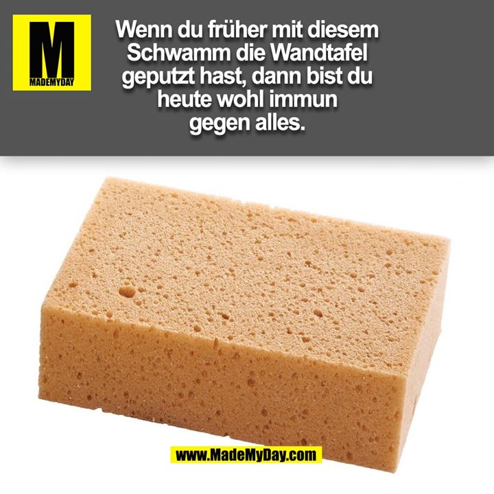 DIESER Schwamm? Der ist doch nagelneu! Nein Nein, immun ist man, wenn man mit denen geputzt hatte, die wochenlang benutzt wurden, zerfressen waren vom Dreck mit einer Mischung aus Dunkelgrün- und Grautönen und nicht einmal mehr annähernd die Form des Originals hatten 😅😅😅