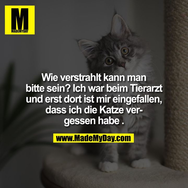 Man kann noch viel verstrahlter sein! Ich war beim Tierarzt und erst dort ist mir eingefallen, dass ich gar keine Katze habe.