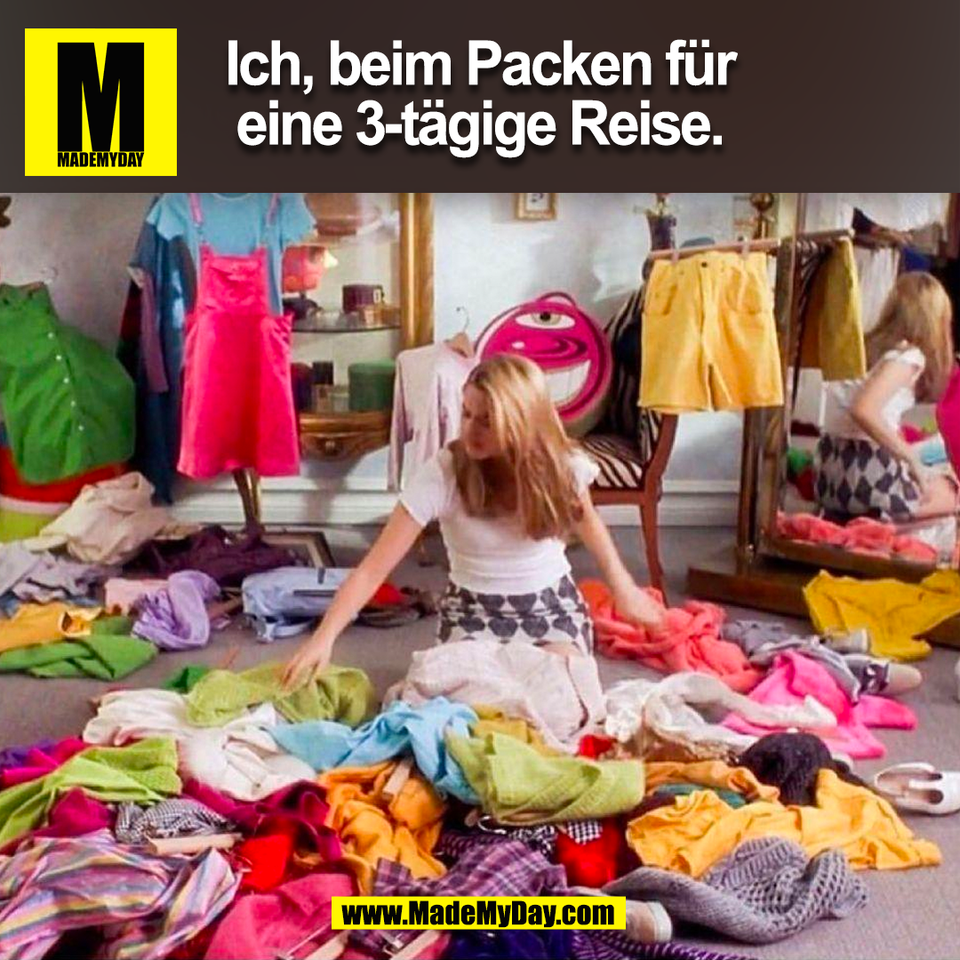 Wenn ich 3 Tage verreise, da packe ich nie Koffer. Ich zerlege meine Wohnung und Bau die Wohnung neu auf, in meinem Urlaubsziel. 🤣🤣🤣🤣🤣🤣🤣 Hey... Cool bleiben... Das war ein Scherz.