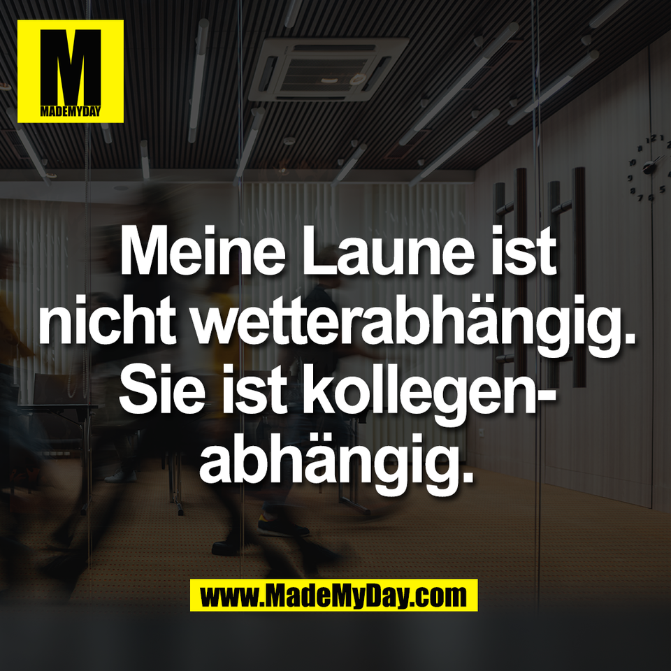 Ich würde sagen, die Laune ist generell menschabhängig oder? 😁 ... Ich bin neuerdings sehr drum bemüht mir diese Laune nicht von irgendwelchen unzufriedenen Personen vermiesen zu lassen. Das Leben ist kurz. - Zu kurz, um ständig mit so ner Fresse ( 😮‍💨😑 ) irgendwo anzukommen, zu wissen, dort sind Menschen, die einen durch ihre bloße Anwesenheit nerven, sich runterziehen zu lassen und dann mit der selben Fresse wieder nach Hause zu gehen. Doch leider lässt sich das nicht immer vermeiden, und ich habe jetzt auch keine Patentlösung für das Problem, außer vielleicht: ignorieren. und sich an die Leute halten, die was für einen übrig haben und für die man selber auch was übrig hat. :)