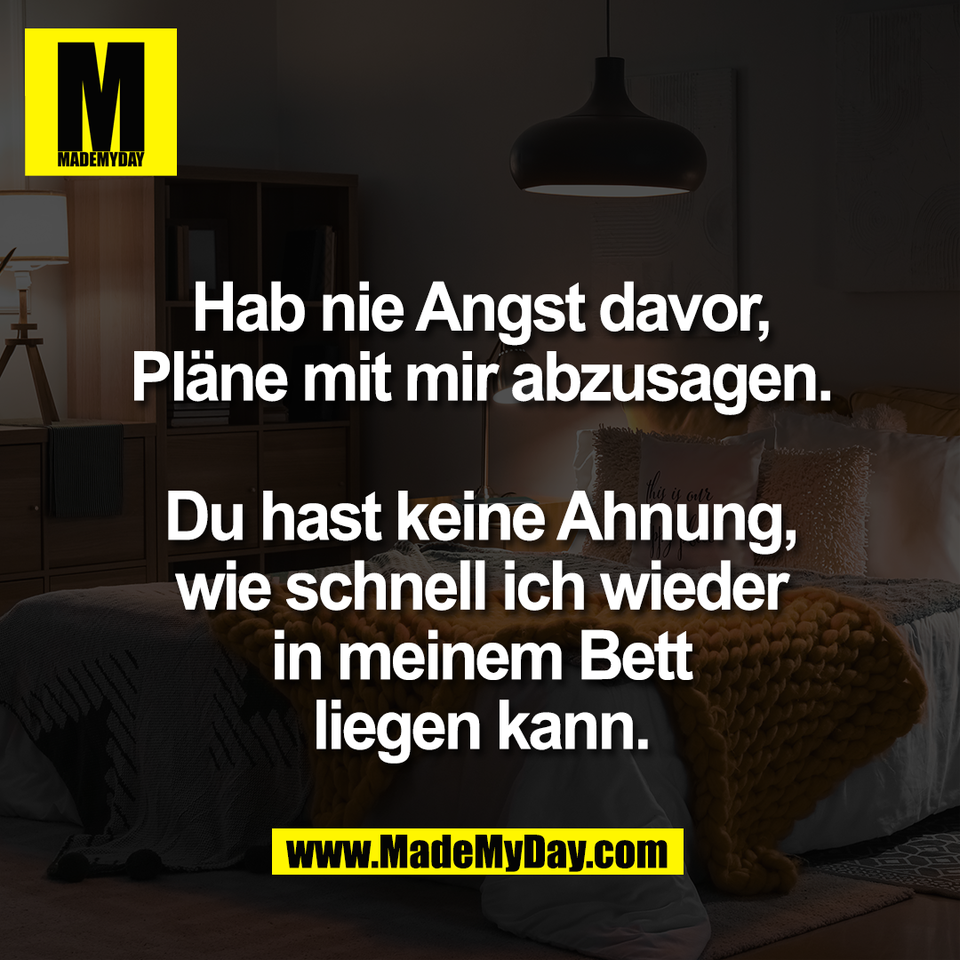 Son bullshit. Niemand mag es wenn man Pläne absagt. Egal wie sehr man sein Bett liebt. Einfach mal Ruhetage dazwischen einlegen