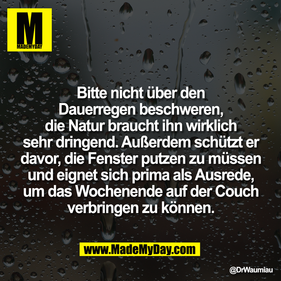 Die Natur hatte die letzten Monaten genug Wasser Da putze ich lieber Fenster 😂