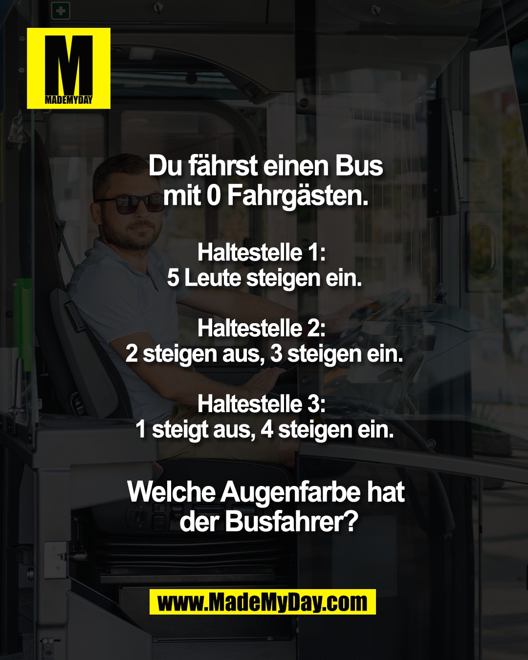 "DU fährst einen Bus" . Ergo hat der Busfahrer MEINE Augenfarbe πŸ˜… öhm blau-grau-grün wenn ich mich nicht täusche πŸ™ˆ